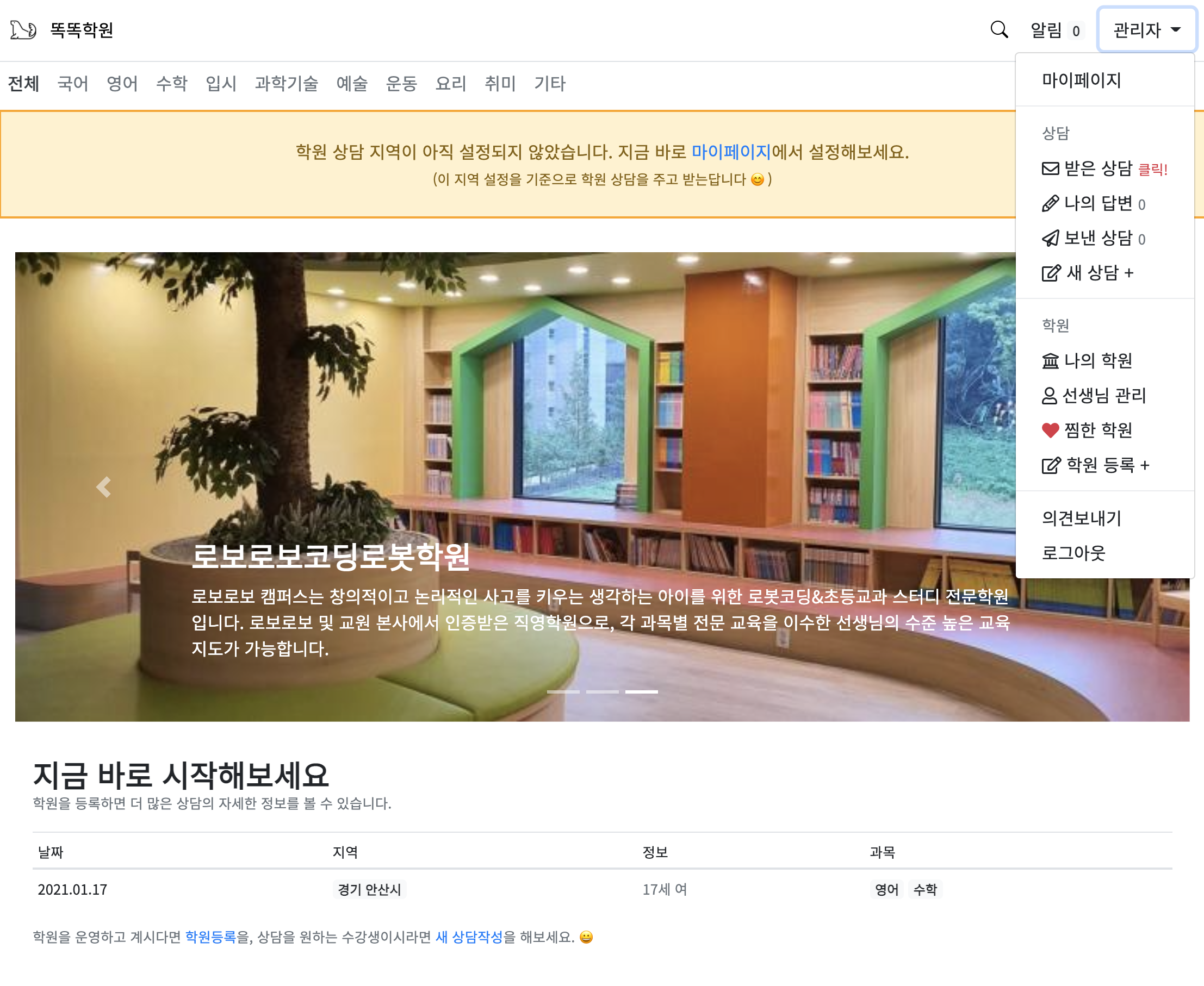 온라인 학원 상담 서비스 '똑똑학원'