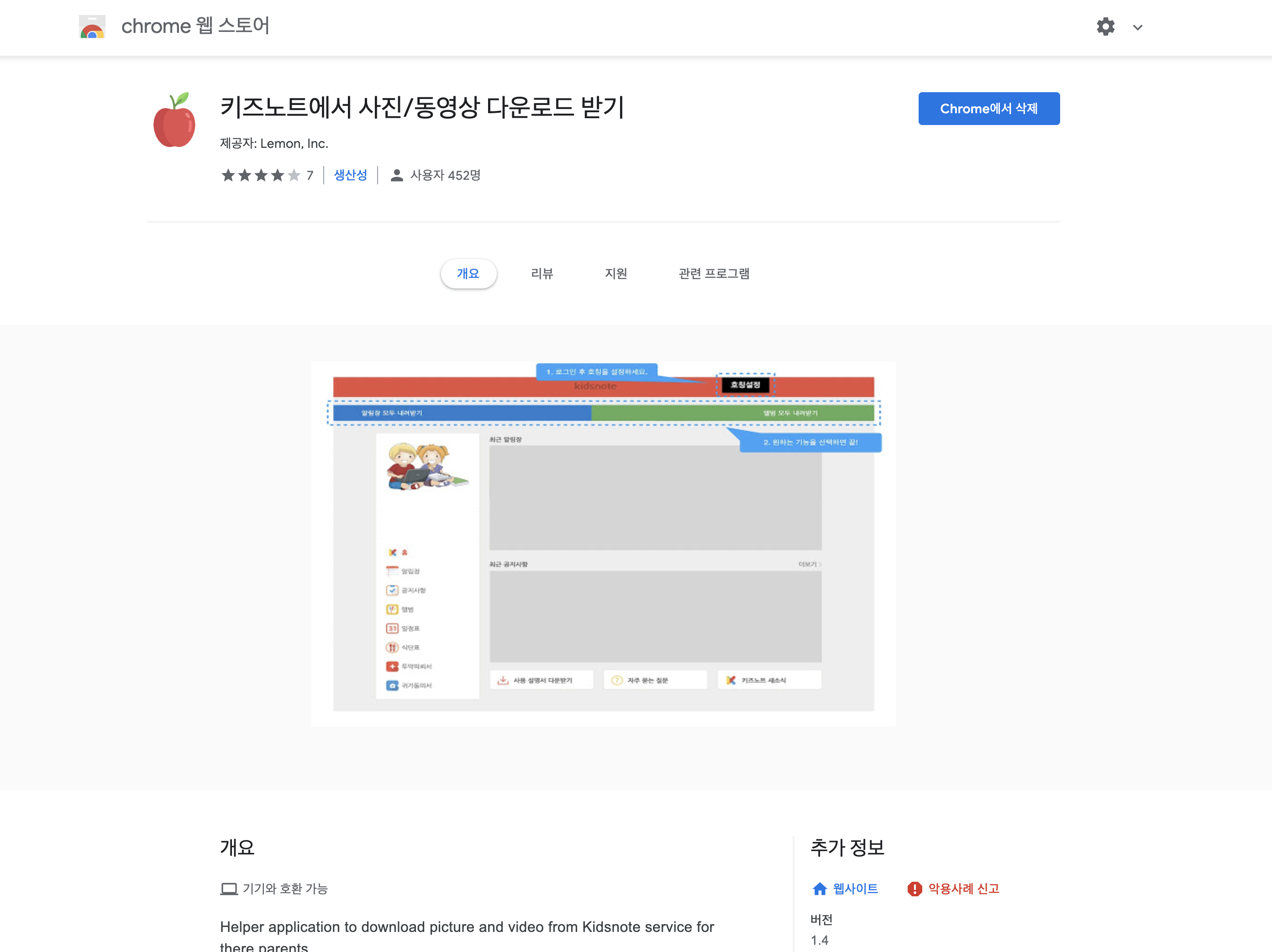 키즈노트에서 사진을 일괄다운로드 할 수 있는 크롬 브라우저 확장 프로그램. 스마트 알림장 ‘키즈노트(kidsnote.com)’의 사진과 동영상을 일괄 다운로드 받는 확장 프로그램입니다. 아이의 사진과 동영상을 일일이 눌러 다운로드를 받는 불편함과 번거로움을 줄이기 위해 만들었습니다.