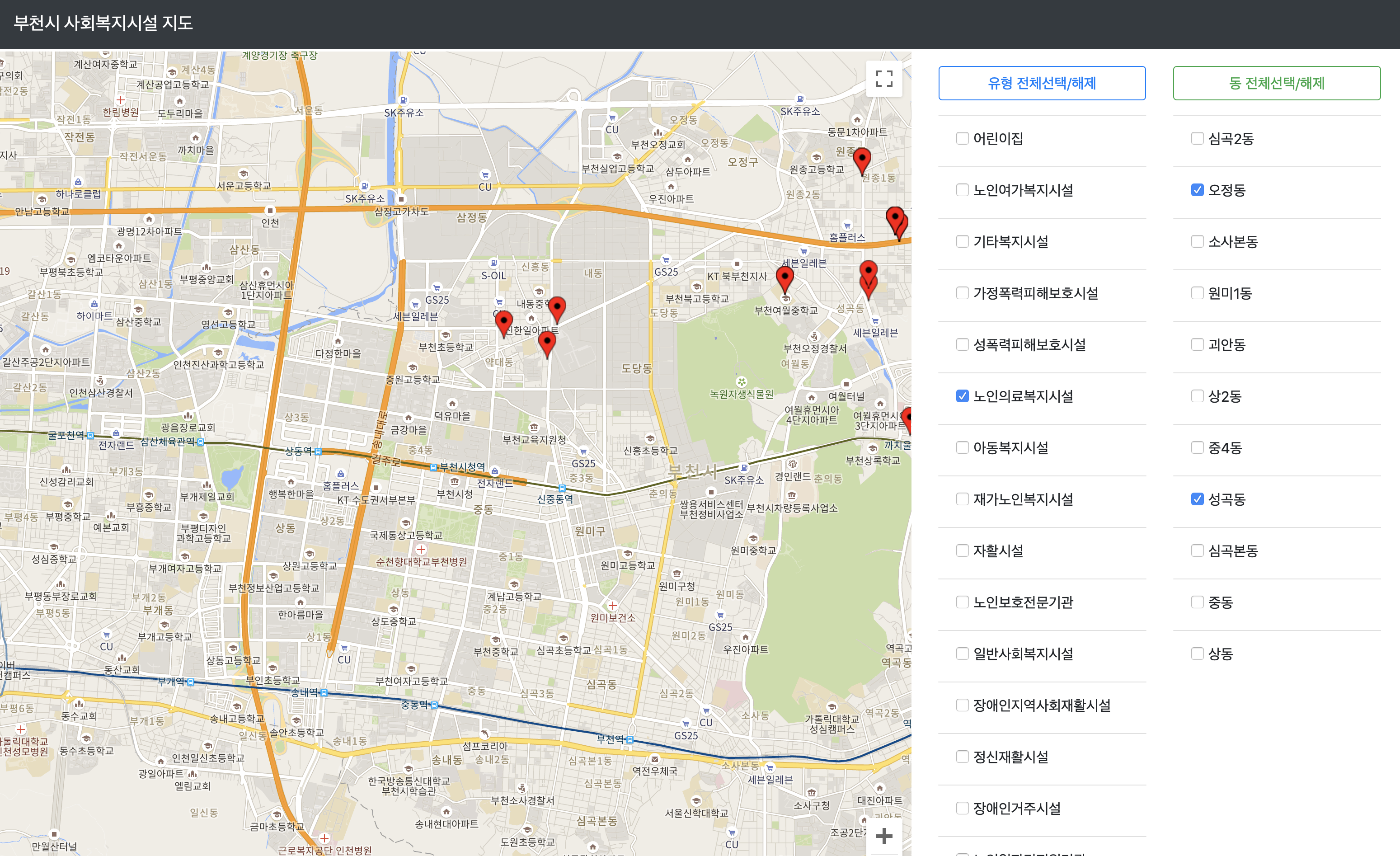 부천시 사회복지시설 지도